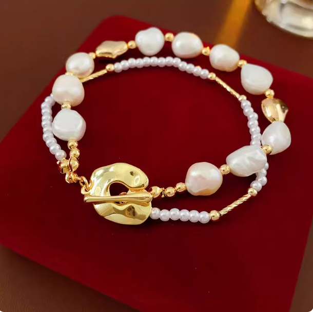 Bratara ajustabila in stil baroc cu perle de apa dulce, placata cu aur 18k