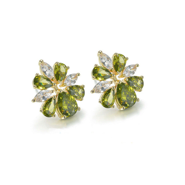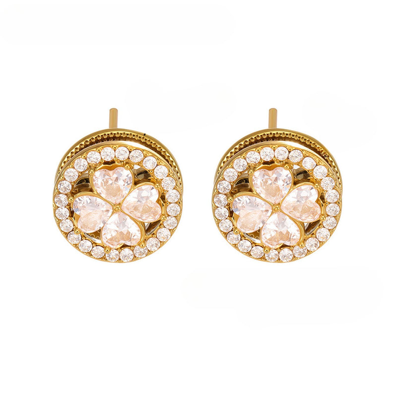 Cercei cu detalii florale din zirconii si placare cu aur, cu clips