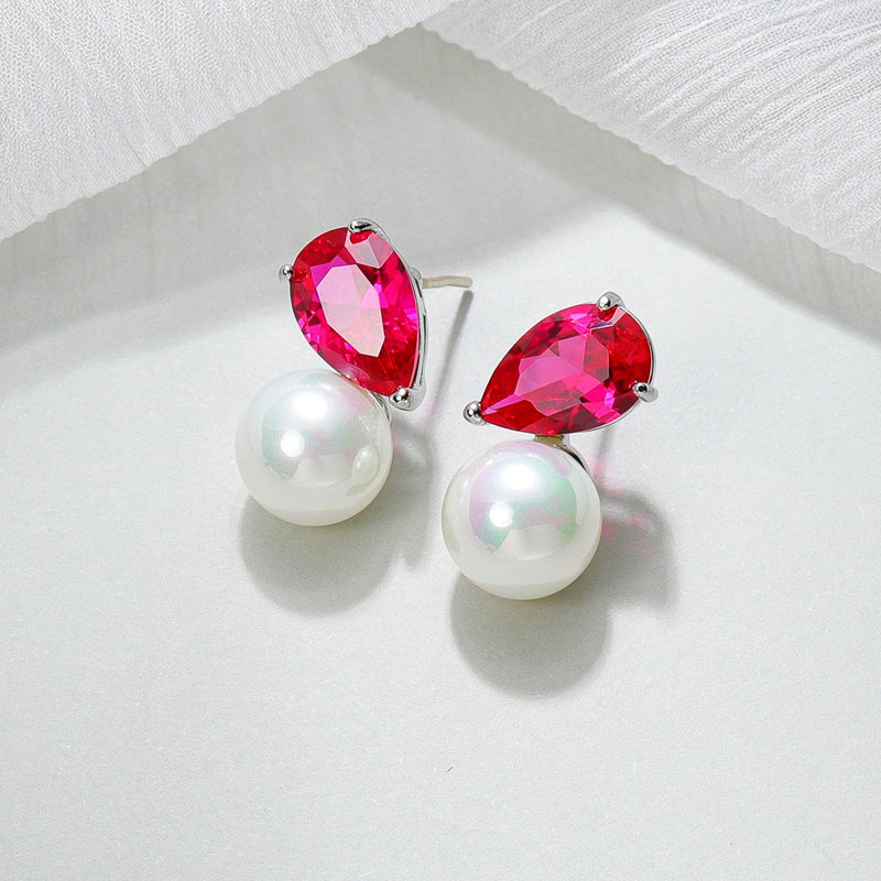 Cercei din otel inoxidabil cu perle din cristal si cristale zirconii