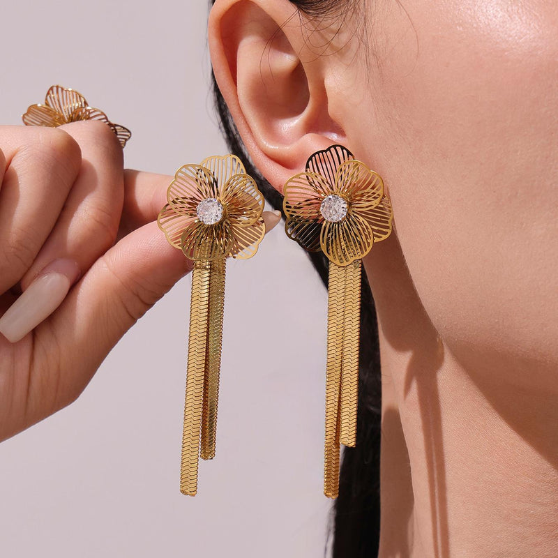 Cercei cu flori 3D din otel inoxidabil placat cu aur 18K