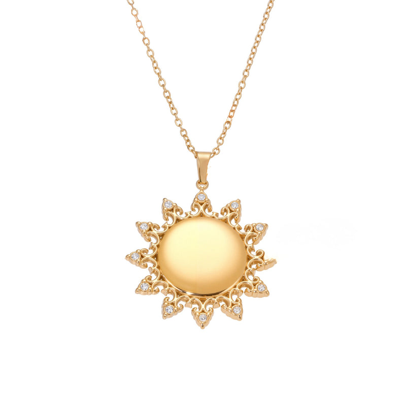 Colier placat cu aur 18K, pandantiv Soare cu detalii filigranate și cristale