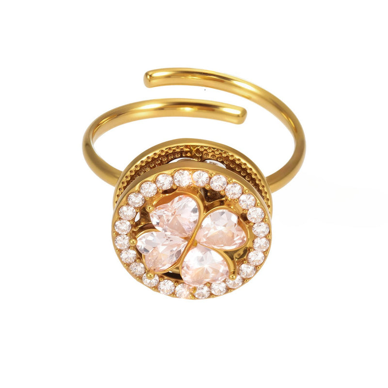 Inel ajustabil din otel inoxidabil placat cu aur 18K si cristale zirconii