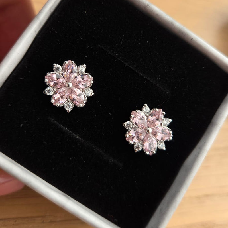 Cercei placati cu aur, cu ace din argint si cristale zirconii roz