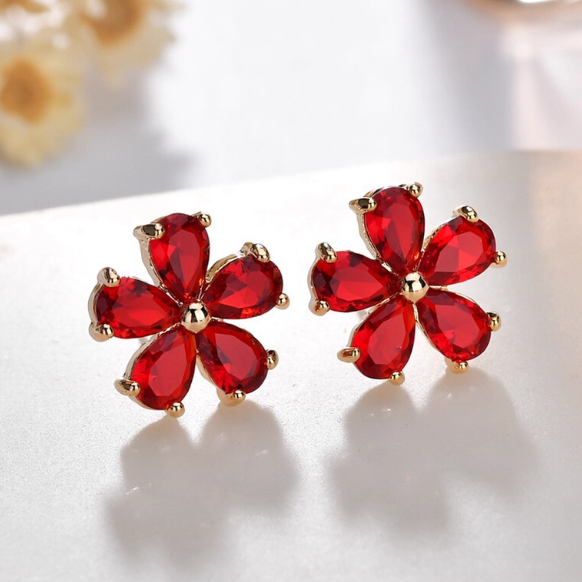 Cercei placati cu aur, cu ace din argint 925 si cristale zirconii rosii