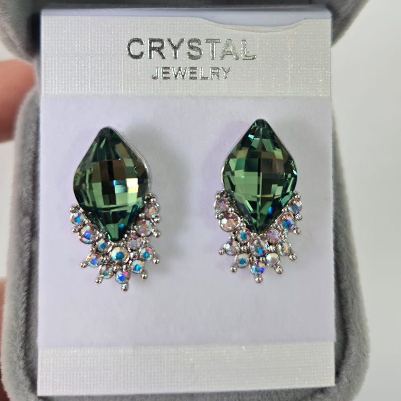 Cercei placati cu paladiu, in forma de romb cu cristale zirconii verzi