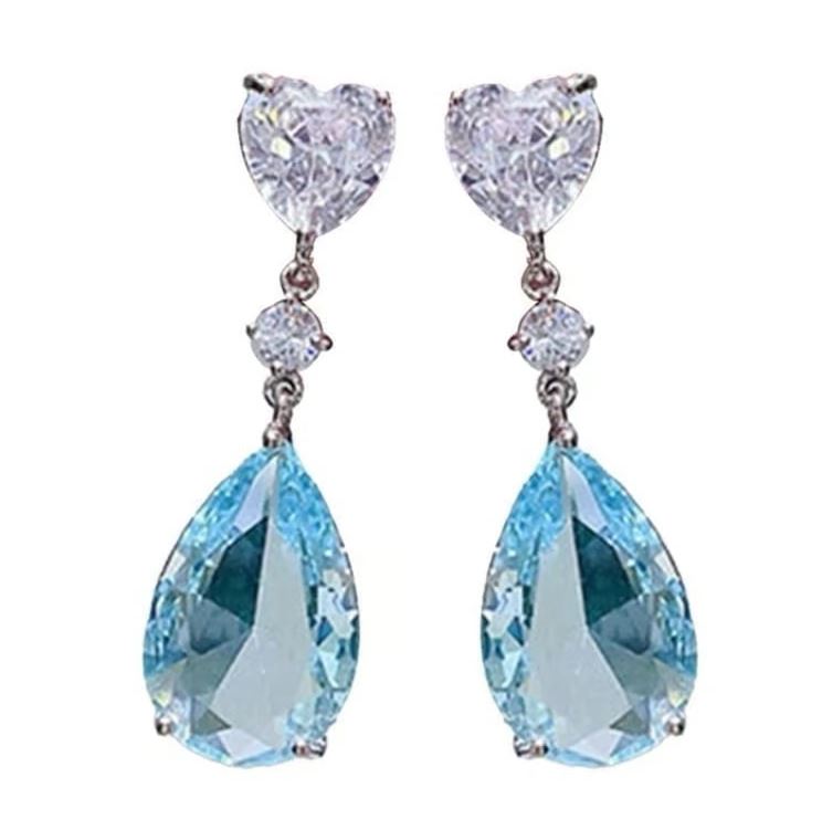 Cercei placati cu paladiu, cu cristal albastru si zirconii