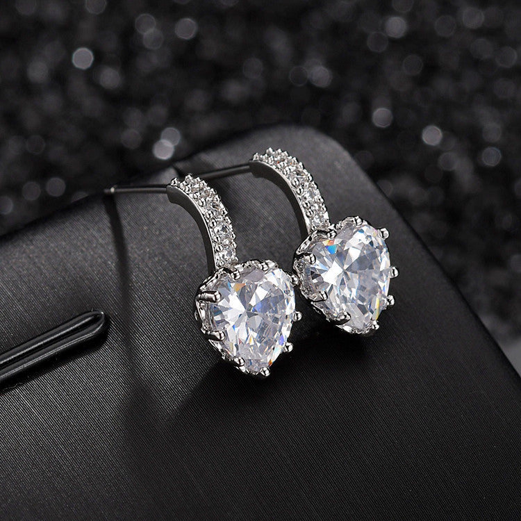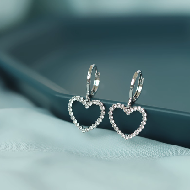 Cercei inima placati cu paladiu si cristale zirconii AAA