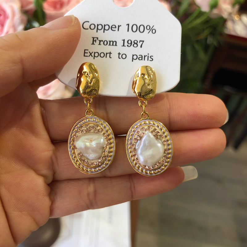 Cercei placati cu aur, cu ace din argint si cristale zirconii roz