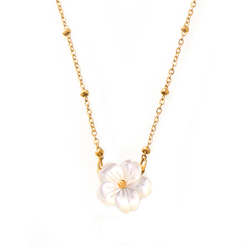 Colier din oțel inoxidabil placat cu aur 18K, cu pandantiv floare