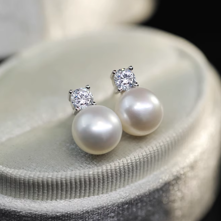 Cercei cu perla, piatra zirconiu si ace de argint 925