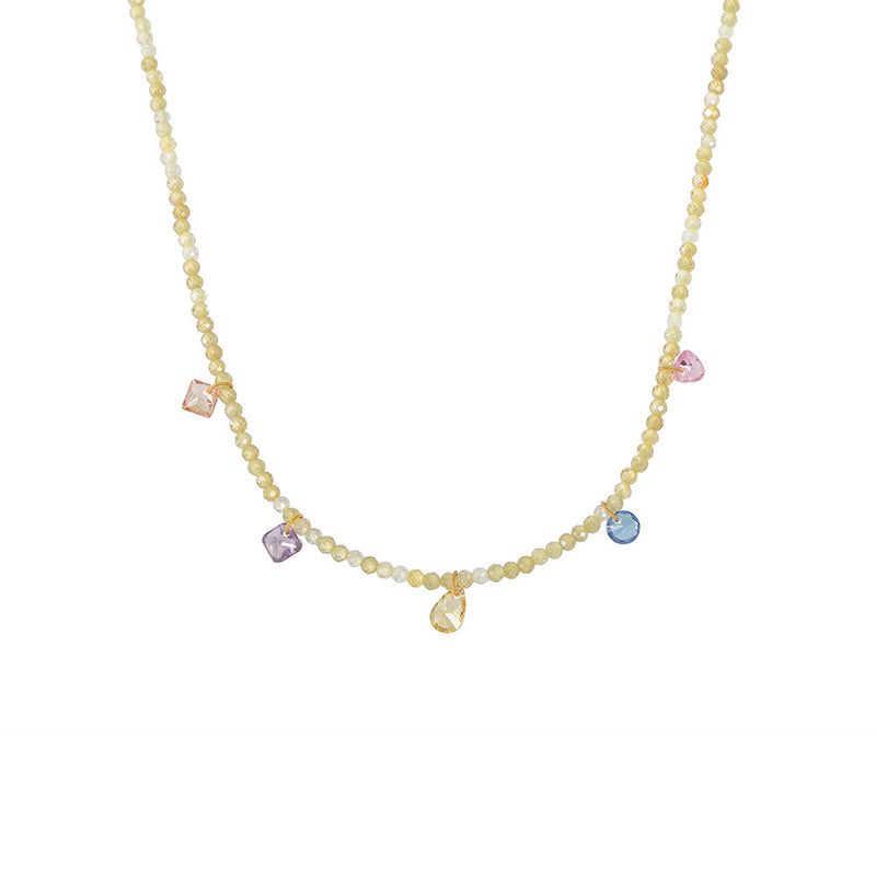 Colier cu mărgele fine și cristale multicolore în nuanțe pastel