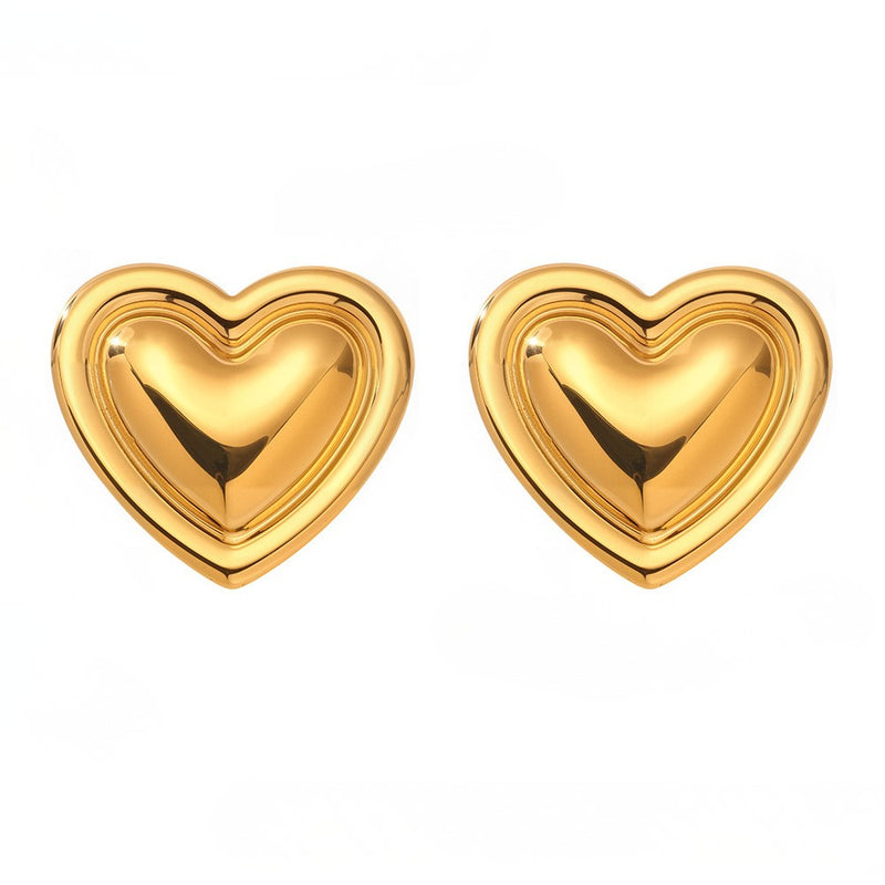 Cercei din oțel inoxidabil placați cu aur 18K în formă de inimă dublă texturată