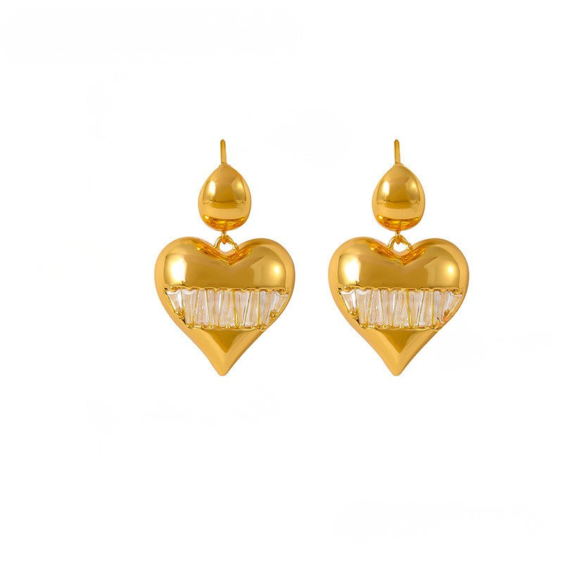 Cercei cu inima asimetrica din oțel inoxidabil placat cu aur 18K
